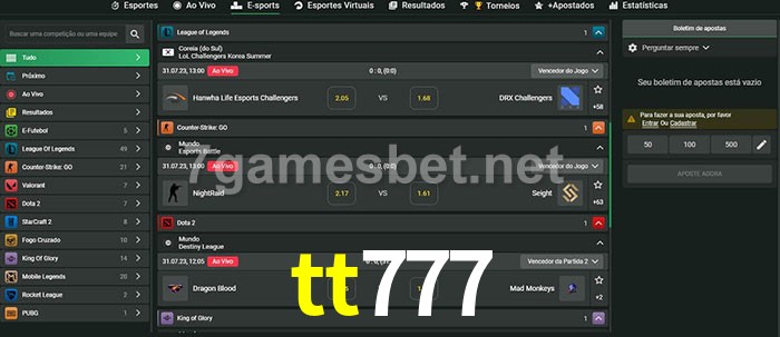 A aposta tt777 oferece aos jogadores a experiência mais conveniente de apostas em eSports!